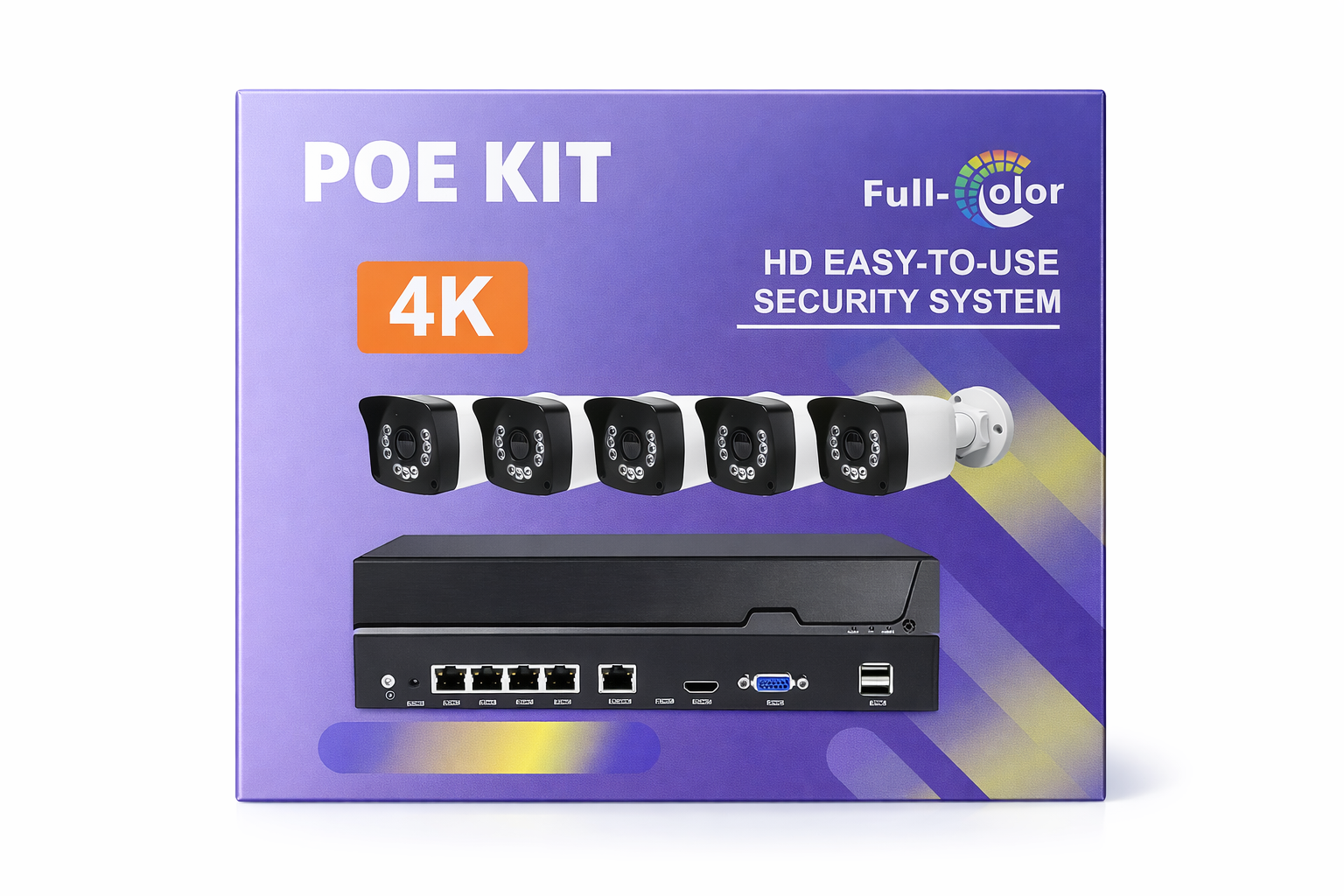 4K PoE Security Camera Kit with full-color night vision, delivering ultra-clear video and easy plug-and-play installation. Ideal for homes and businesses, with reliable remote monitoring and high-performance surveillance.